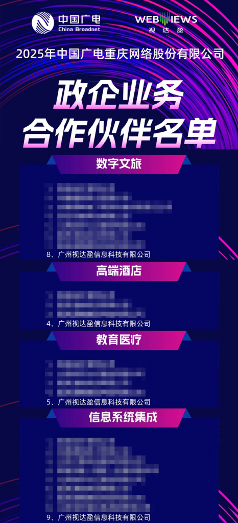 视达盈科技成为中国广电重庆公司政企业务合作伙伴!